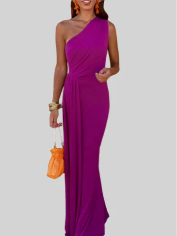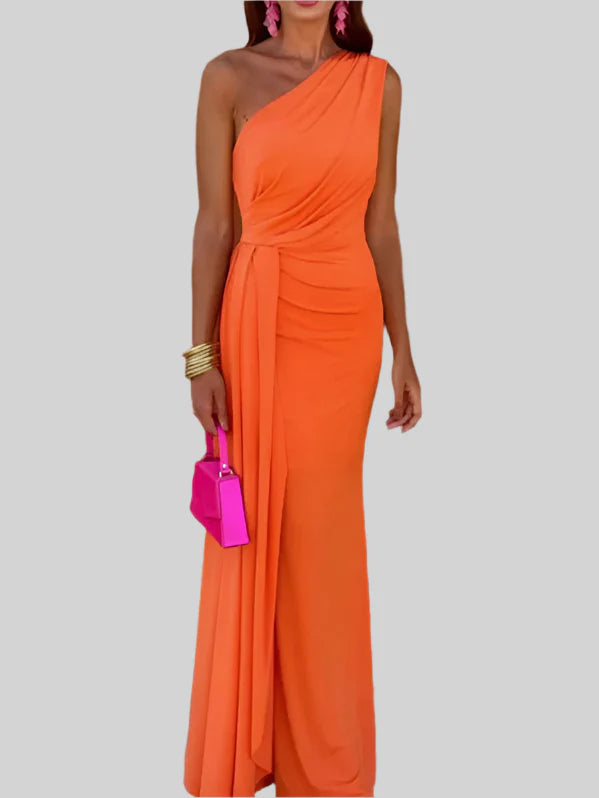 The Noelle Ember Dress is a celebration of feminine strength and effortless grace. With its elegant one-shoulder design and soft draping, it creates a naturally flattering silhouette that radiates confidence. Every step in this dress feels light, fluid, and full of quiet power.